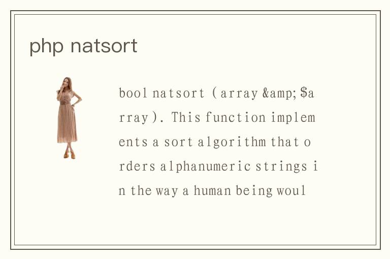官方手册(us/manual/en/function.natsort.php) 复制代码 代码如下 bool natsort ( array &$array ) This function implements a sort algorithm that orders alphanumeric