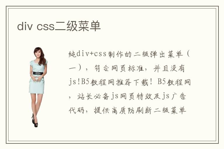 纯div+css制作的二级弹出菜单(一),符合网页标准,并且没有js!B5教程网推荐下载!B5教程网,站长必备js网页特效及js广告代码,提供高质