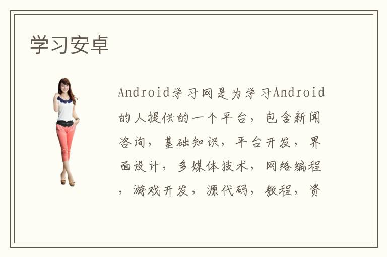 Android学习网是为学习Android的人提供的一个平台,包含新闻咨询,基础知识,平台开发,界面设计,多媒体技术,网络编程,游戏开发,源代码,教程,资料下载,在线文