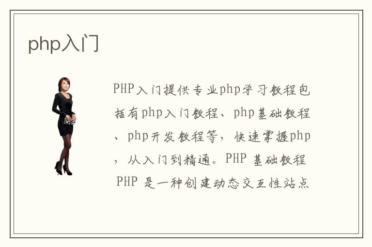 PHP入门提供专业php学习教程包括有php入门教程、php基础教程、php开发教程等,快速掌握php,从入门到精通。