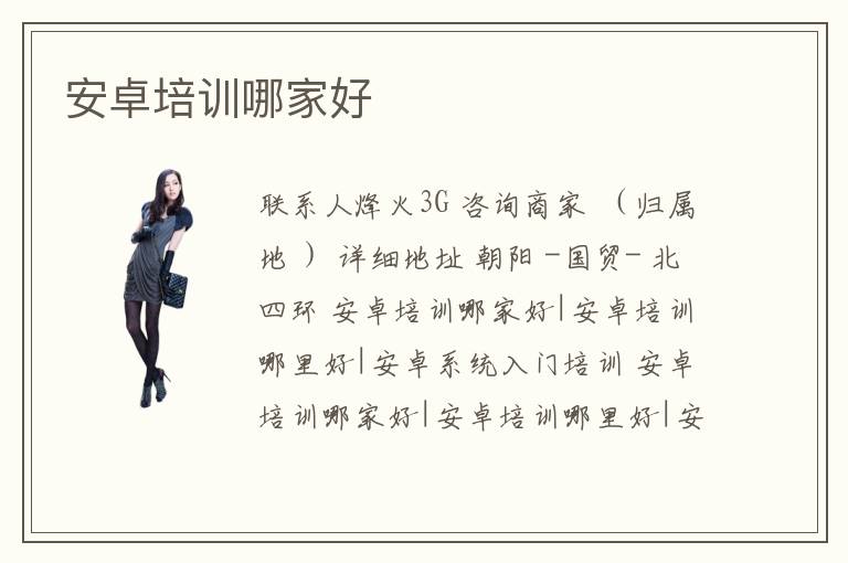 联系人烽火3G 咨询商家 (归属地 ) 详细地址 朝阳 -国贸- 北四环 安卓培训哪家好|安卓培训哪里好|安卓系统入门培训 安卓培训哪家好|安卓培训哪里好|安卓系统入