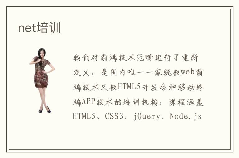 我们对前端技术范畴进行了重新定义,是国内唯一一家既教web前端技术又教HTML5开发各种移动终端APP技术的培训机构,课程涵盖HTML5、CSS3、jQuery、Node.js、Canvas