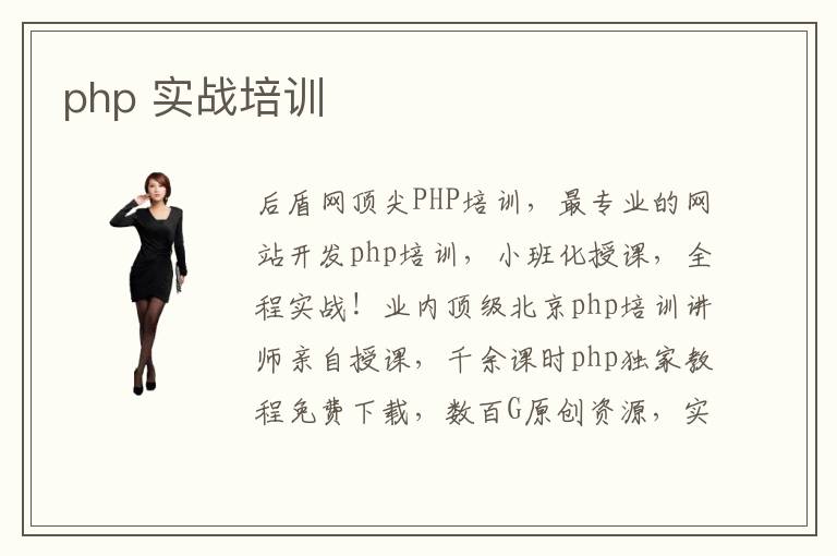 后盾网顶尖PHP培训,最专业的网站开发php培训,小班化授课,全程实战!业内顶级北京php培训讲师亲自授课,千余课时php独家教程免费下载,数百G原创资源,实力