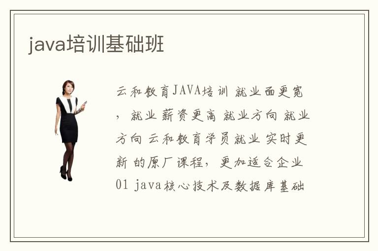 课程名称java基础班招生对象热爱软件编程,有意向成为优秀的Java软件工程师的朋友们,同时建议最好是理工科大专或大专以上学历,有一定英语基础,能阅读简单的