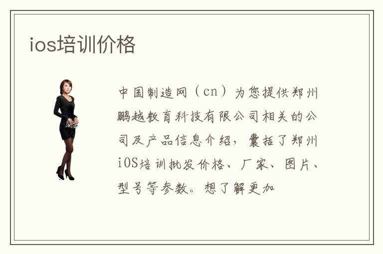 中国制造网(cn)为您提供郑州鹏越教育科技有限公司相关的公司及产品信息介绍,囊括了郑州iOS培训批发价格、厂家、图片、型号等参数。想了解更加