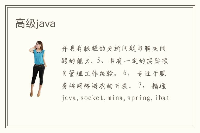 并具有较强的分析问题与解决问题的能力. 5、具有一定的实际项目管理工作经验。 6, 专注于服务端网络游戏的开发。 7, 精通java,socket,mina,spring,ibatic,mysql,tcp/ip