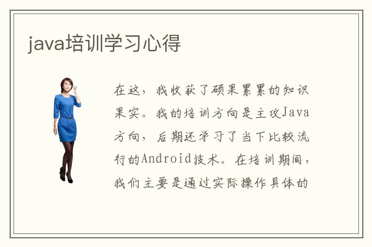 java实训心得体会一java实训心得体会 此次只实训了短短的三周。虽说时间很短,但其 总的来说,这次培训效果不错,对自己有一定的提升,这完全不同与学校的学习,因为它