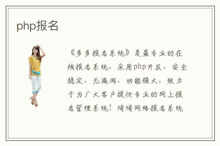 《多多报名系统》是最专业的在线报名系统,采用php开发,安全稳定、无漏洞、功能强大,致力于为广大客户提供专业的网上报名管理系统!
