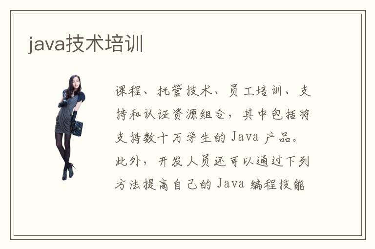课程、托管技术、员工培训、支持和认证资源组合,其中包括将支持数十万学生的 Java 产品。此外,开发人员还可以通过下列方法提高自己的 Java 编程技能浏览 OracleJava 开