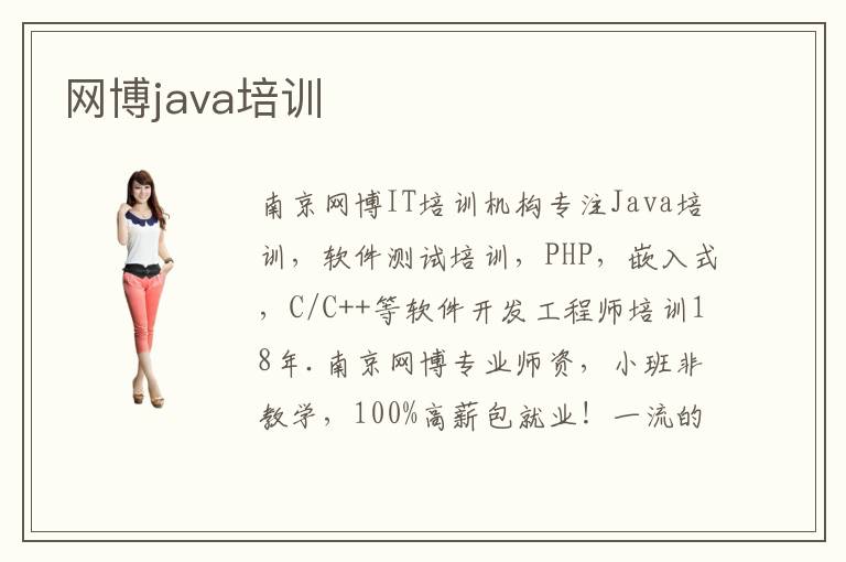 南京网博IT培训机构专注Java培训,软件测试培训,PHP,嵌入式,C/C++等软件开发工程师培训18年.南京网博专业师资,小班非教学,100%高薪包就业!一流的软件编程开