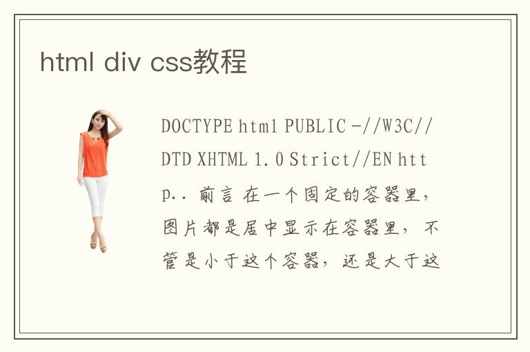 DOCTYPE html PUBLIC -//W3C//DTD XHTML 1.0 Strict//EN http.. 前言 在一个固定的容器里,图片都是居中显示在容器里,不管是小于这个容器,还是大于这个容器.. 其实css
