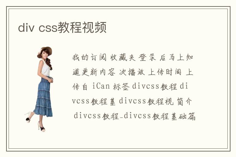 我的订阅 收藏夹 登录 后马上知道更新内容 次播放 上传时间 上传自 iCan 标签 divcss教程 divcss教程基 divcss教程视 简介 divcss教程_divcss教程基础篇_divcss教程第