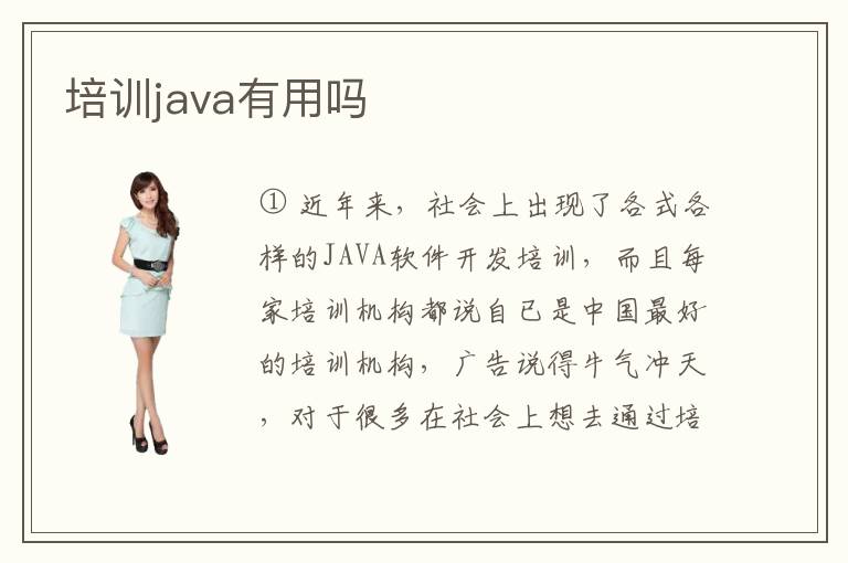 ① 近年来,社会上出现了各式各样的JAVA软件开发培训,而且每家培训机构都说自已是中国最好的培训机构,广告说得牛气冲天,对于很多在社会上想去通过培训学习JAVA而进
