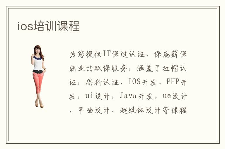 为您提供IT保过认证、保底薪保就业的双保服务,涵盖了红帽认证,思科认证、IOS开发、PHP开发,ui设计,Java开发,ue设计、平面设计、超媒体设计等课程的学习内容。