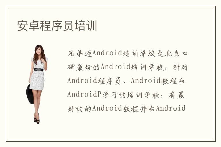 兄弟连Android培训学校是北京口碑最好的Android培训学校,针对Android程序员、Android教程和AndroidP学习的培训学校,有最好的的Android教程并由Android培训专家亲