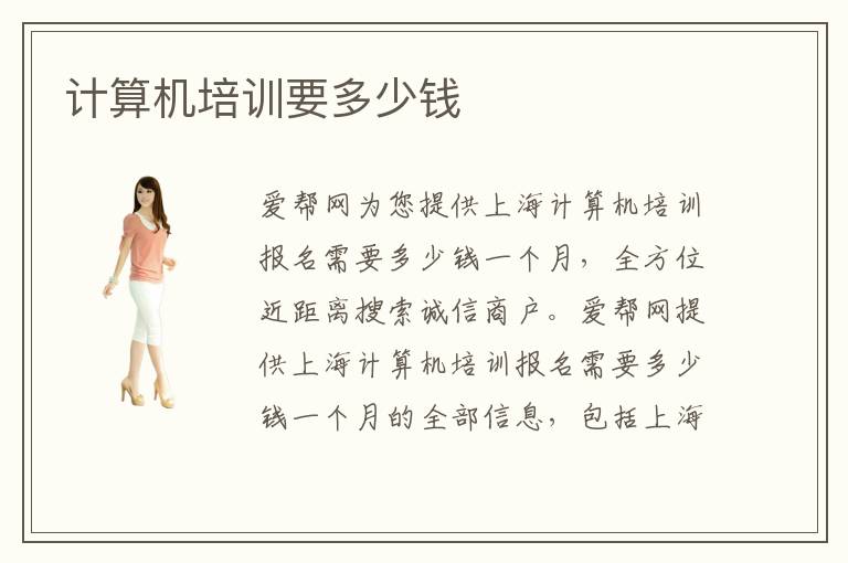 爱帮网为您提供上海计算机培训报名需要多少钱一个月,全方位近距离搜索诚信商户。爱帮网提供上海计算机培训报名需要多少钱一个月的全部信息,包括上海计算机培训报名需要