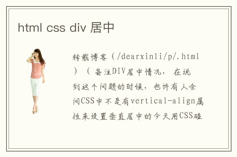 转载博客(/dearxinli/p/.html) ( 备注DIV居中情况, 在说到这个问题的时候,也许有人会问CSS中不是有vertical-align属性来设置垂直居中的