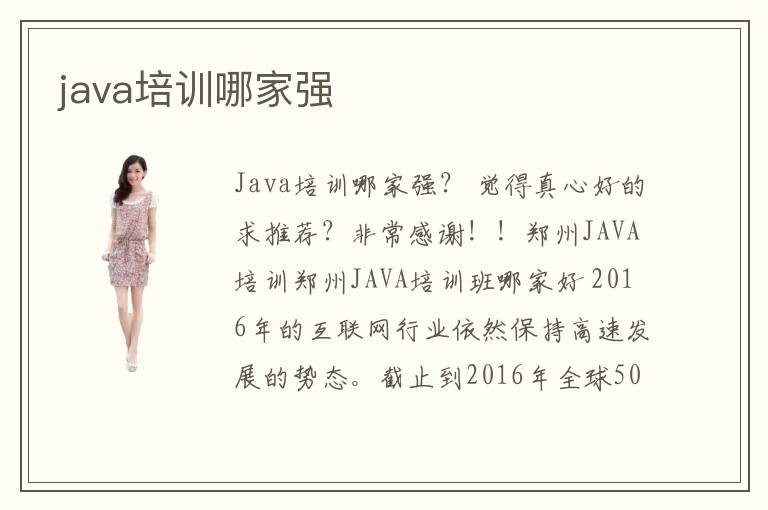 郑州JAVA培训郑州JAVA培训班哪家好 2016年的互联网行业依然保持高速发展的势态。截止到2016年全球5000多万网站中,有80