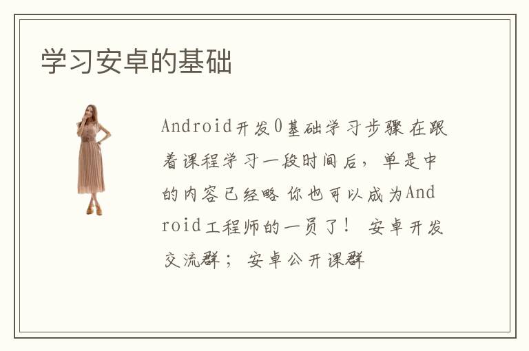 Android开发0基础学习步骤 在跟着课程学习一段时间后,单是中的内容已经略 你也可以成为Android工程师的一员了! 安卓开发交流群 ;安卓公开课群