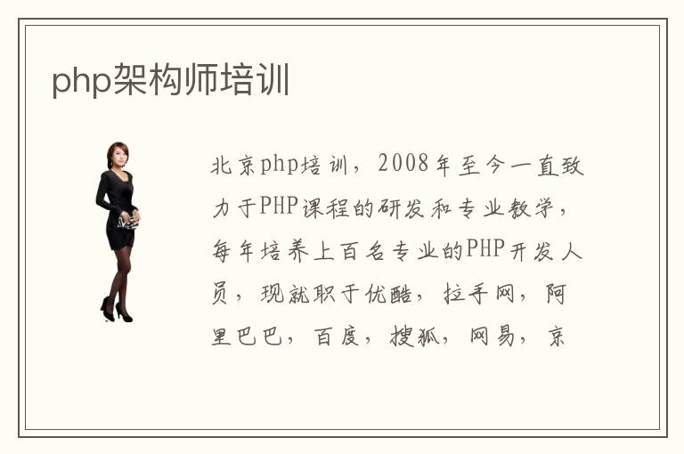 北京php培训,2008年至今一直致力于PHP课程的研发和专业教学,每年培养上百名专业的PHP开发人员,现就职于优酷,拉手网,阿里巴巴,百度,搜狐,网易,京东商