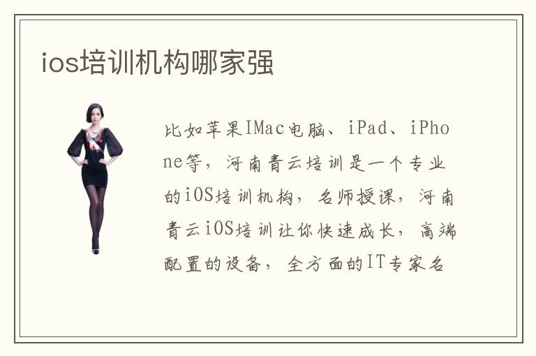 比如苹果IMac电脑、iPad、iPhone等,河南青云培训是一个专业的iOS培训机构,名师授课,河南青云iOS培训让你快速成长,高端配置的设备,全方面的IT专家名师,也因而造就