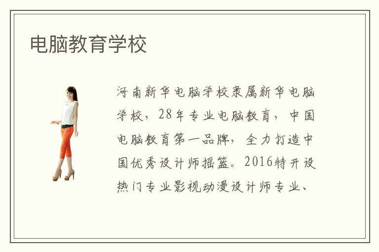 河南新华电脑学校隶属新华电脑学校,28年专业电脑教育,中国电脑教育第一品牌,全力打造中国优秀设计师摇篮。2016特开设热门专业影视动漫设计师专业、建筑装饰
