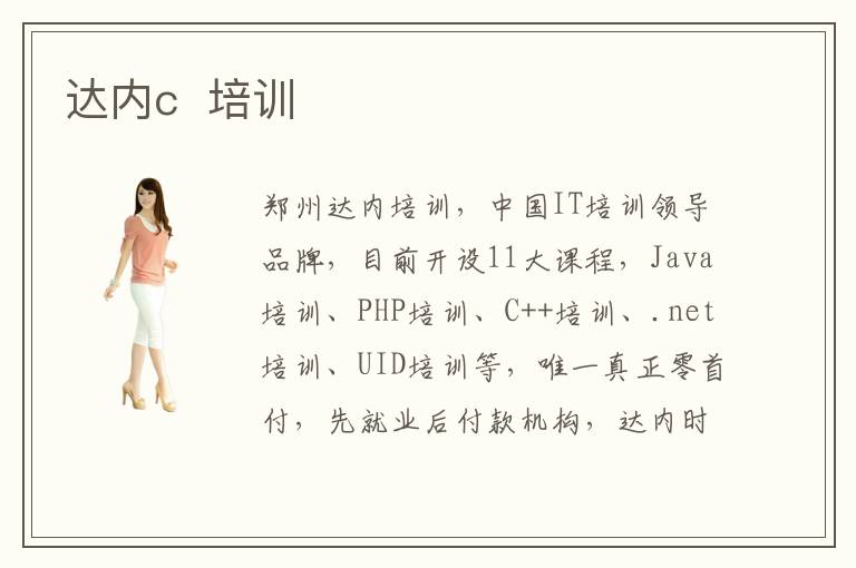 郑州达内培训,中国IT培训领导品牌,目前开设11大课程,Java培训、PHP培训、C++培训、.net培训、UID培训等,唯一真正零首付,先就业后付款机构,达内时代科技集团!