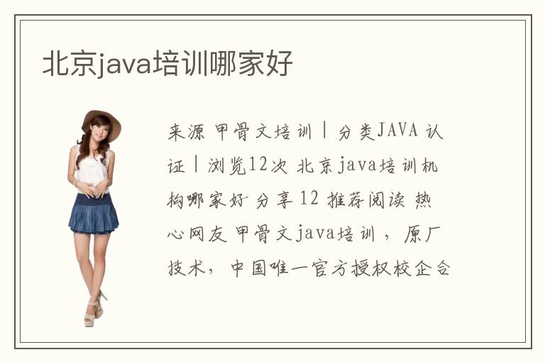 来源 甲骨文培训 | 分类JAVA 认证 | 浏览12次 北京java培训机构哪家好 分享 12 推荐阅读 热心网友 甲骨文java培训 ,原厂技术,中国唯一官方授权校企合作机构,并且全国5