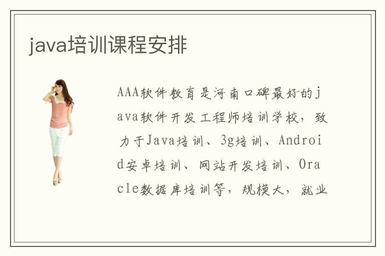 AAA软件教育是河南口碑最好的java软件开发工程师培训学校,致力于Java培训、3g培训、Android安卓培训、网站开发培训、Oracle数据库培训等,规模大,就业强,口碑好,可