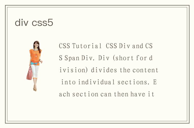 CSS Tutorial > CSS Div and CSS Span Div. Div (short for division) divides the content into individual sections. Each section can then have its own formatting, as