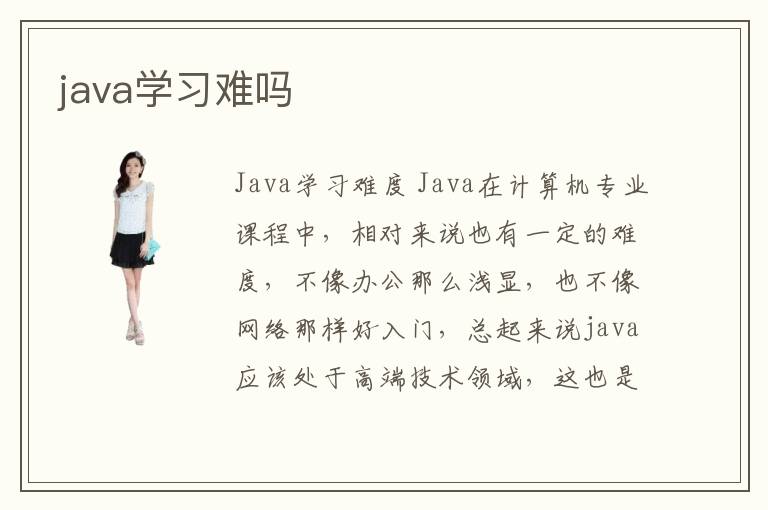 Java学习难度 Java在计算机专业课程中,相对来说也有一定的难度,不像办公那么浅显,也不像网络那样好入门,总起来说java应该处于高端技术领域,这也是他必须应有的特性,
