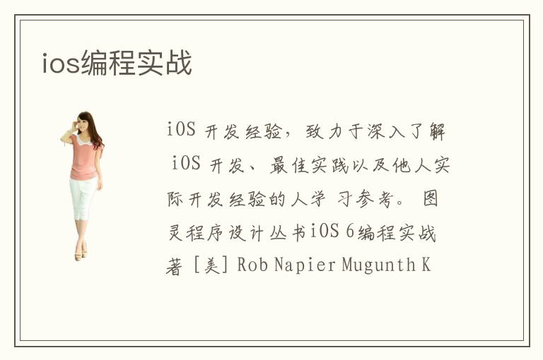 iOS 开发经验,致力于深入了解 iOS 开发、最佳实践以及他人实际开发经验的人学 习参考。 图灵程序设计丛书iOS 6编程实战 著 [美] Rob Napier Mugunth Kumar译 陈晓亮 武海峰 邓