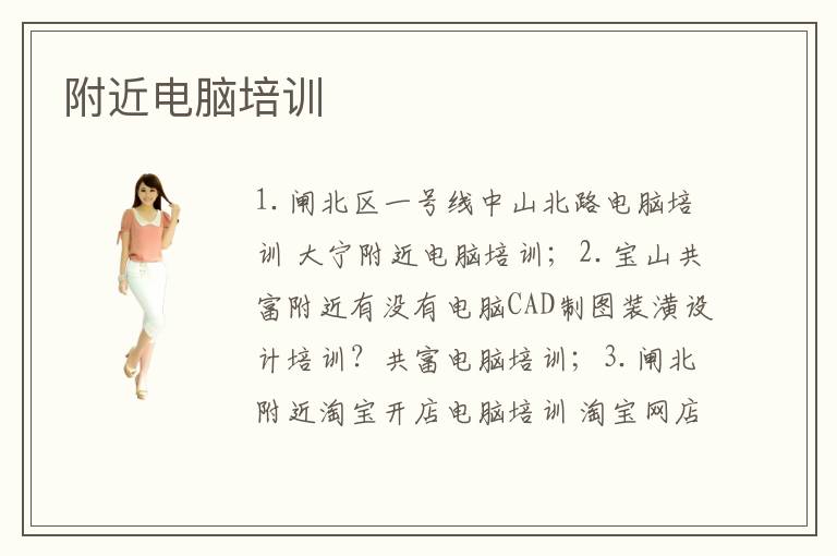 1.闸北区一号线中山北路电脑培训 大宁附近电脑培训;2.宝山共富附近有没有电脑CAD制图装潢设计培训?共富电脑培训;3.闸北附近淘宝开店电脑培训 淘宝网店电脑培训 网店装