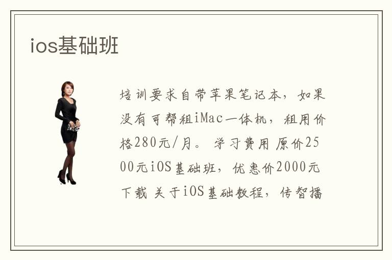 培训要求自带苹果笔记本,如果没有可帮租iMac一体机,租用价格280元/月。 学习费用 原价2500元iOS基础班,优惠价2000元 下载 关于iOS基础教程,传智播客已经录