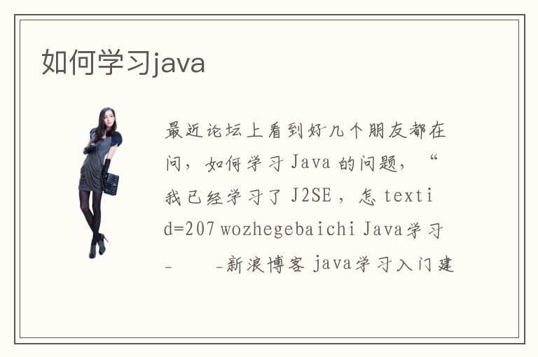 最近论坛上看到好几个朋友都在问,如何学习 Java 的问题,“我已经学习了 J2SE ,怎 textid=207 wozhegebaichi Java学习_尛愺_新浪博客 java学习入门建议-摘自CSDN热心网友