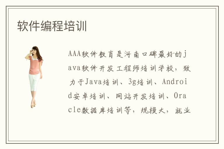 AAA软件教育是河南口碑最好的java软件开发工程师培训学校,致力于Java培训、3g培训、Android安卓培训、网站开发培训、Oracle数据库培训等,规模大,就业强,口碑好,可