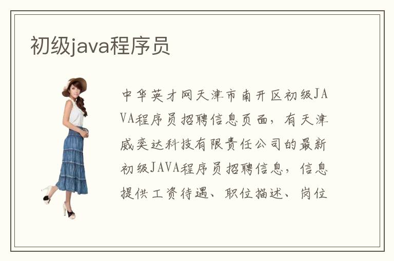 中华英才网天津市南开区初级JAVA程序员招聘信息页面,有天津威奕达科技有限责任公司的最新初级JAVA程序员招聘信息,信息提供工资待遇、职位描述、岗位职责、工作内容、