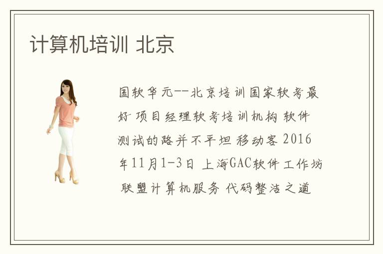 北京电脑培训频道为您提供大量的北京电脑培训信息,软件工程师培训、网络工程师培训、Cisco认证培训、MCSE培训、JAVA培训、平面设计培训等信息尽在列表网电脑培训频道