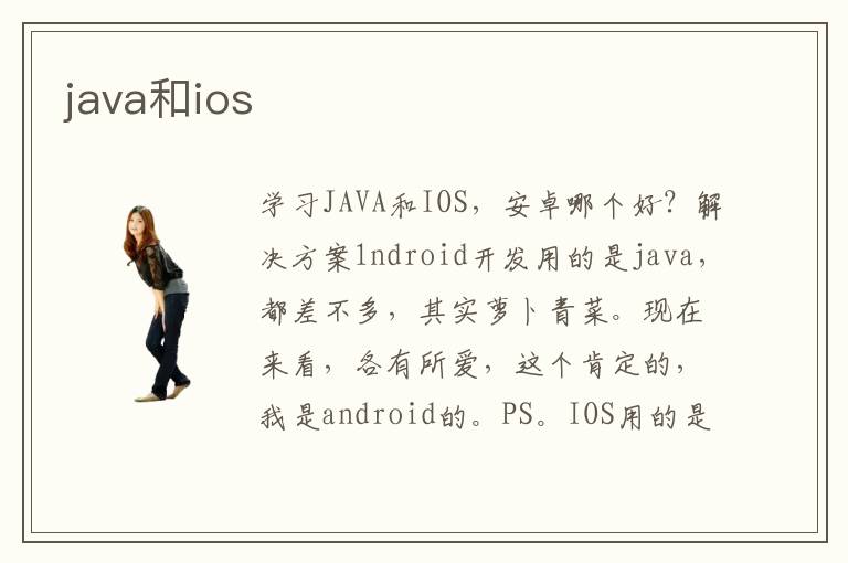 学习JAVA和IOS,安卓哪个好?解决方案1ndroid开发用的是java,都差不多,其实萝卜青菜。现在来看,各有所爱,这个肯定的,我是android的。PS。IOS用的是object-C。具