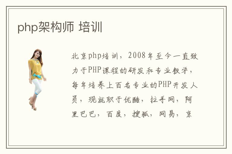 北京php培训,2008年至今一直致力于PHP课程的研发和专业教学,每年培养上百名专业的PHP开发人员,现就职于优酷,拉手网,阿里巴巴,百度,搜狐,网易,京东商