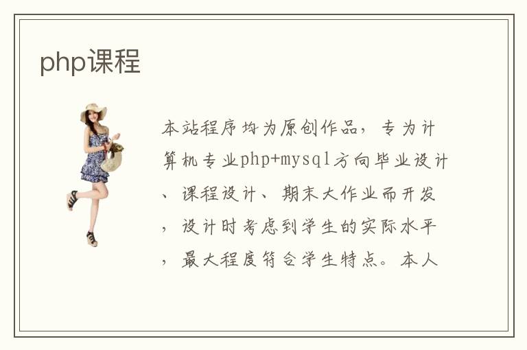 本站程序均为原创作品,专为计算机专业php+mysql方向毕业设计、课程设计、期末大作业而开发,设计时考虑到学生的实际水平,最大程度符合学生特点。本人从事计算机专业