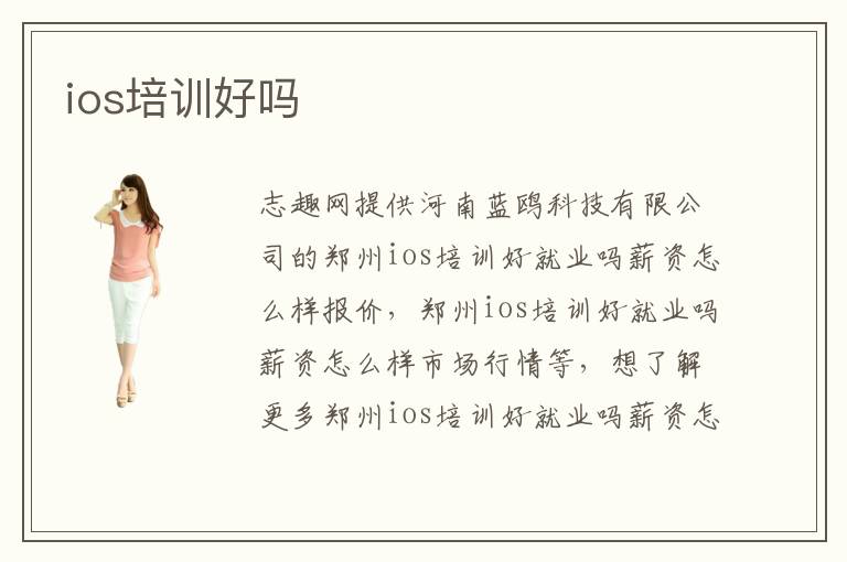 志趣网提供河南蓝鸥科技有限公司的郑州ios培训好就业吗薪资怎么样报价,郑州ios培训好就业吗薪资怎么样市场行情等,想了解更多郑州ios培训好就业吗薪资怎么样供求信息,请