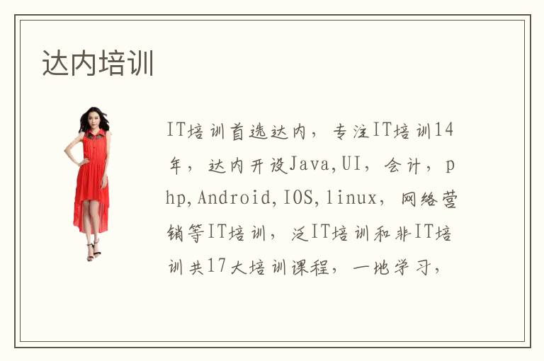 IT培训首选达内,专注IT培训14年,达内开设Java,UI,会计,php,Android,IOS,linux,网络营销等IT培训,泛IT培训和非IT培训共17大培训课程,一地学习,全国就业!