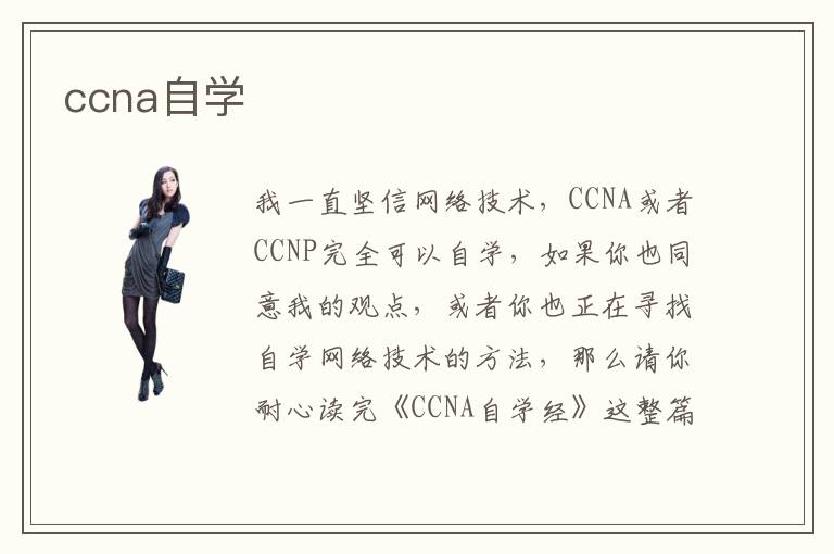 我一直坚信网络技术,CCNA或者CCNP完全可以自学,如果你也同意我的观点,或者你也正在寻找自学网络技术的方法,那么请你耐心读完《CCNA自学经》这整篇文章,我相信