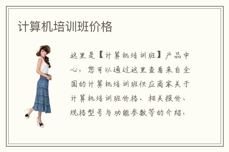 这里是【计算机培训班】产品中心,您可以通过这里查看来自全国的计算机培训班供应商家关于计算机培训班价格、相关报价、规格型号与功能参数等的介绍,中国企业链