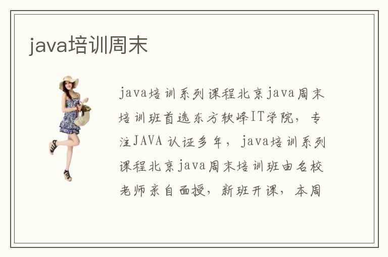 java培训系列课程北京java周末培训班首选东方软峰IT学院,专注JAVA 认证多年,java培训系列课程北京java周末培训班由名校老师亲自面授,新班开课,本周报名享受优惠 Tel010