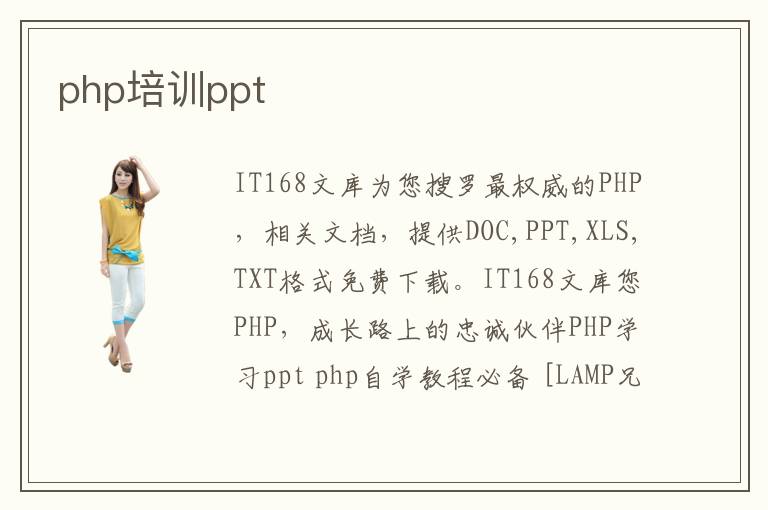 IT168文库为您搜罗最权威的PHP,相关文档,提供DOC,PPT,XLS,TXT格式免费下载。IT168文库您PHP,成长路上的忠诚伙伴