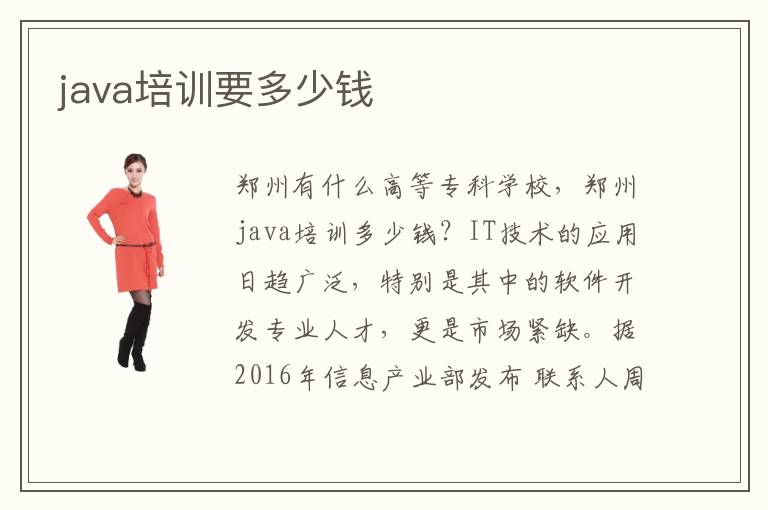 郑州有什么高等专科学校,郑州java培训多少钱?IT技术的应用日趋广泛,特别是其中的软件开发专业人才,更是市场紧缺。据2016年信息产业部发布 联系人周老师,联系