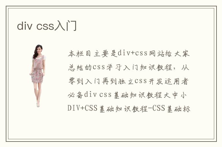 本栏目主要是div+css网站给大家总结的css学习入门知识教程,从零到入门再到独立css开发运用者必备div css基础知识教程