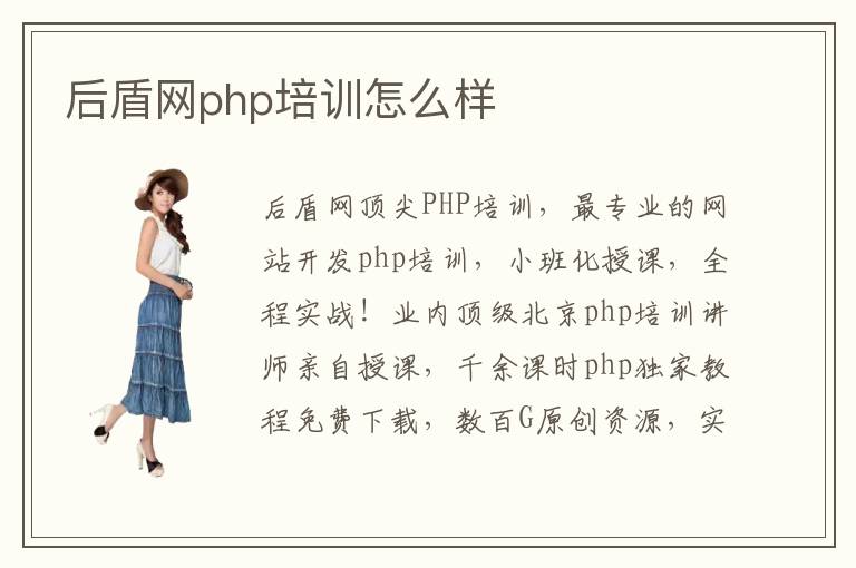 后盾网顶尖PHP培训,最专业的网站开发php培训,小班化授课,全程实战!业内顶级北京php培训讲师亲自授课,千余课时php独家教程免费下载,数百G原创资源,实力